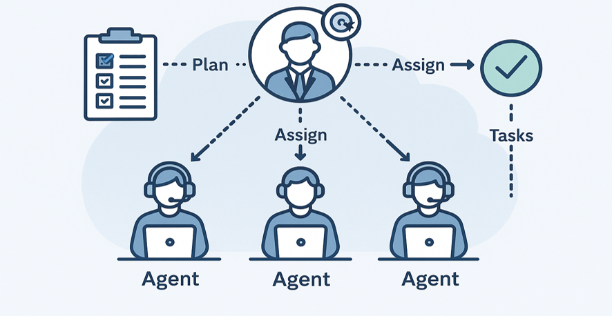 特に「マルチエージェントシステム」は、オーケストレーターといわれるエージェントが与えられた役割(ゴール)に対し、それを遂行するための計画を立てます。そして別のエージェントにタスクを振り分け、進捗を管理することで、チームで仕事を完了する事ができます。