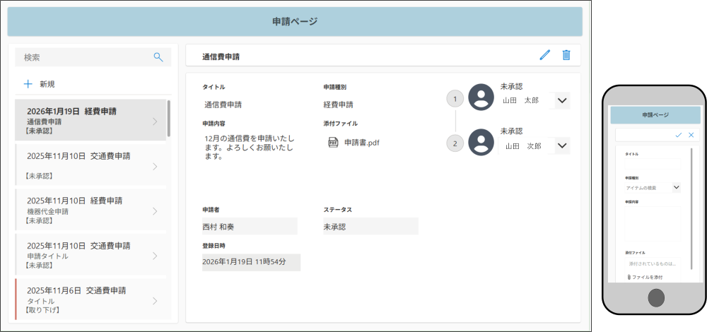 - PC・スマホ両対応で場所を選ばず申請・承認