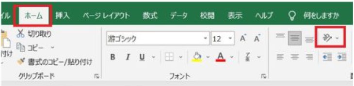 続いてリボンの「ホームタブ」の「配置グループ」を確認してください。そこに「方向ボタン」があり、文字の回転や反転といった文字の表記を調整できる表示が出てきますので、その中の「縦書き」をクリックしましょう。