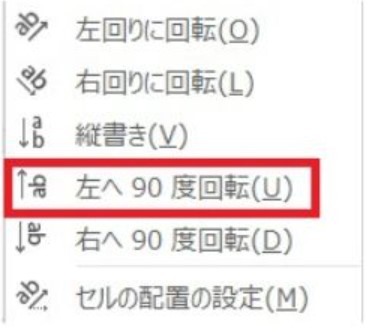 • するとテキスト表示のメニューが出てきますので、「左へ90度回転」を選びましょう。