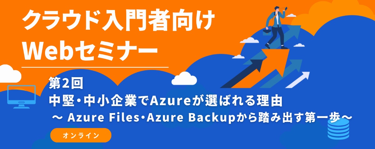 クラウド入門者向けWebセミナー<第2回>中堅・中小企業でAzureが選ばれる理由~Azure Files、Azure Backupから踏み出す第一歩~ 開催のお知らせ
