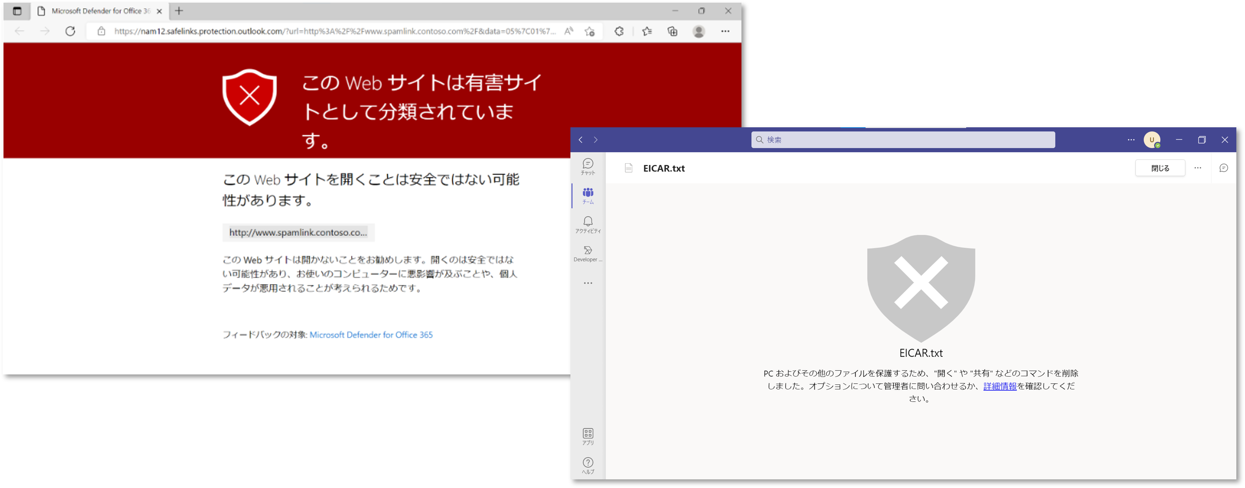 メール、添付ファイル、リンク または SharePoint、Teamsのコラボレーションツールに対する標的型攻撃等の脅威から保護します。