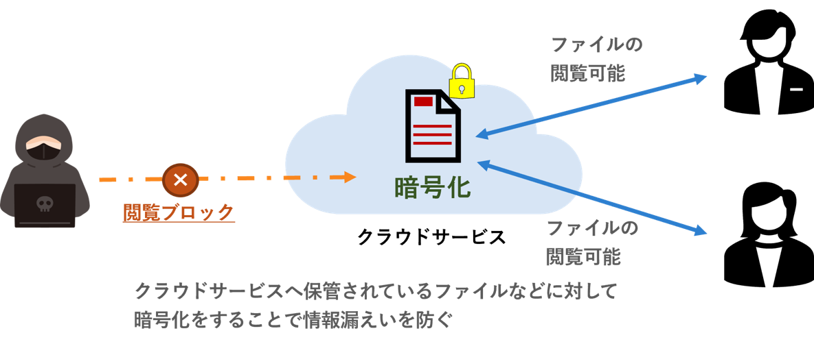 組織内の重要情報や機密情報を含むデータに対して、暗号化を実施することで情報漏えいを防ぐことが可能です。